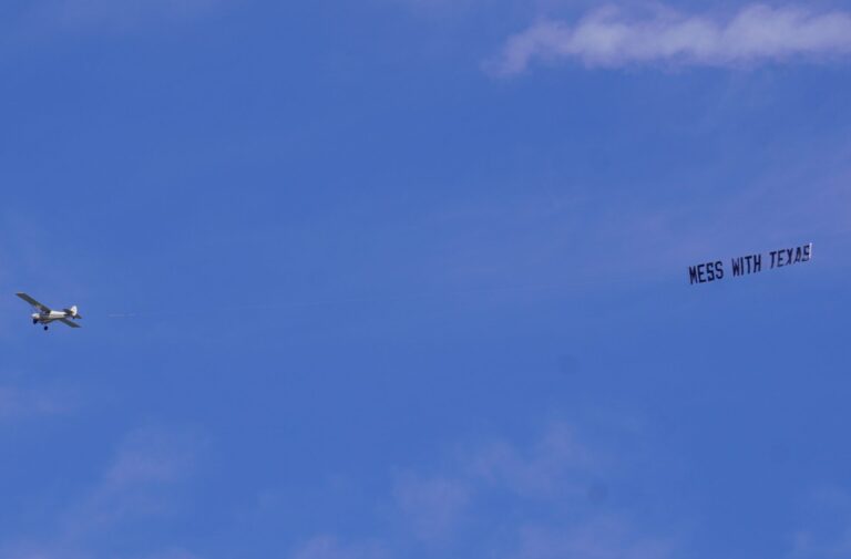 A small plane circled the Maryland State House throughout Monday morning and afternoon, trailing a banner with a call to action: “MESS WITH TEXAS.”