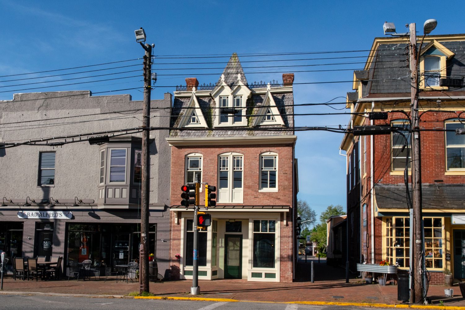 Fortunately, this building was built next to a wide alley, so the residential upper floors had windows and daylight on all sides of the building. This was important to enable cross ventilation in an era without HVAC but the left side windows were blocked when the adjacent building was constructed. The exterior color palette gives this building great curb appeal-this exquisite gem has long been one of my fave buildings in this part of Chestertown’s Historic District streetscape.