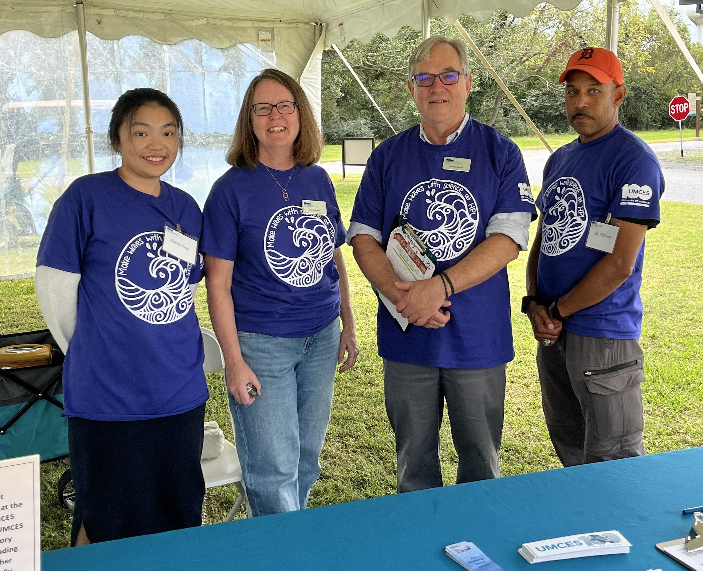 Horn Point Director Mike Sieracki (third right) with (from left) Postdoctoral Fellow Xiaoxu Guo, UMCES Vice President Lois Colaprete, and A.K. Williams.