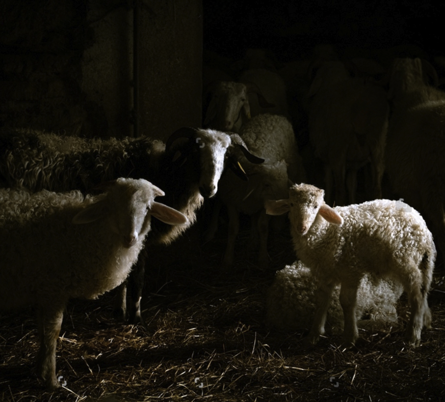 Editor’s Note: The poet paints a cozy farmyard scene. We’re lulled into a sense of calm with amusing descriptions of the sheep. The allusion to the Christian religion makes us think of another night in a barn, long ago. What are the sheep listening for in the dark? Their wooly backs are full of light, their breath suspended. There’s a building sense of anticipation. We think, like he animals, it is for snow, but in the last two lines, we learn it’s something else.