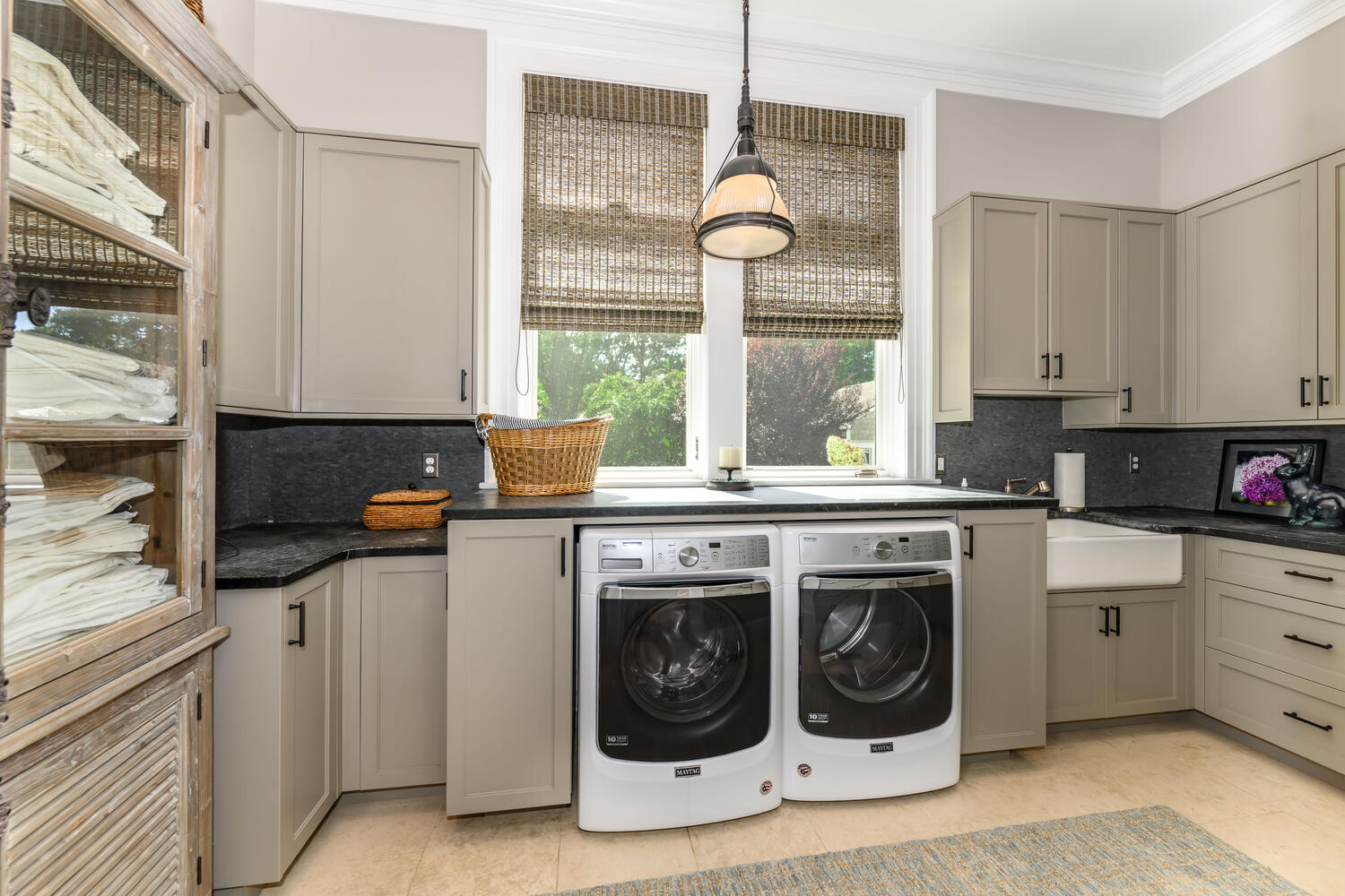 This well-appointed laundry room pairs functionality with daylight, making chores easier to approach.