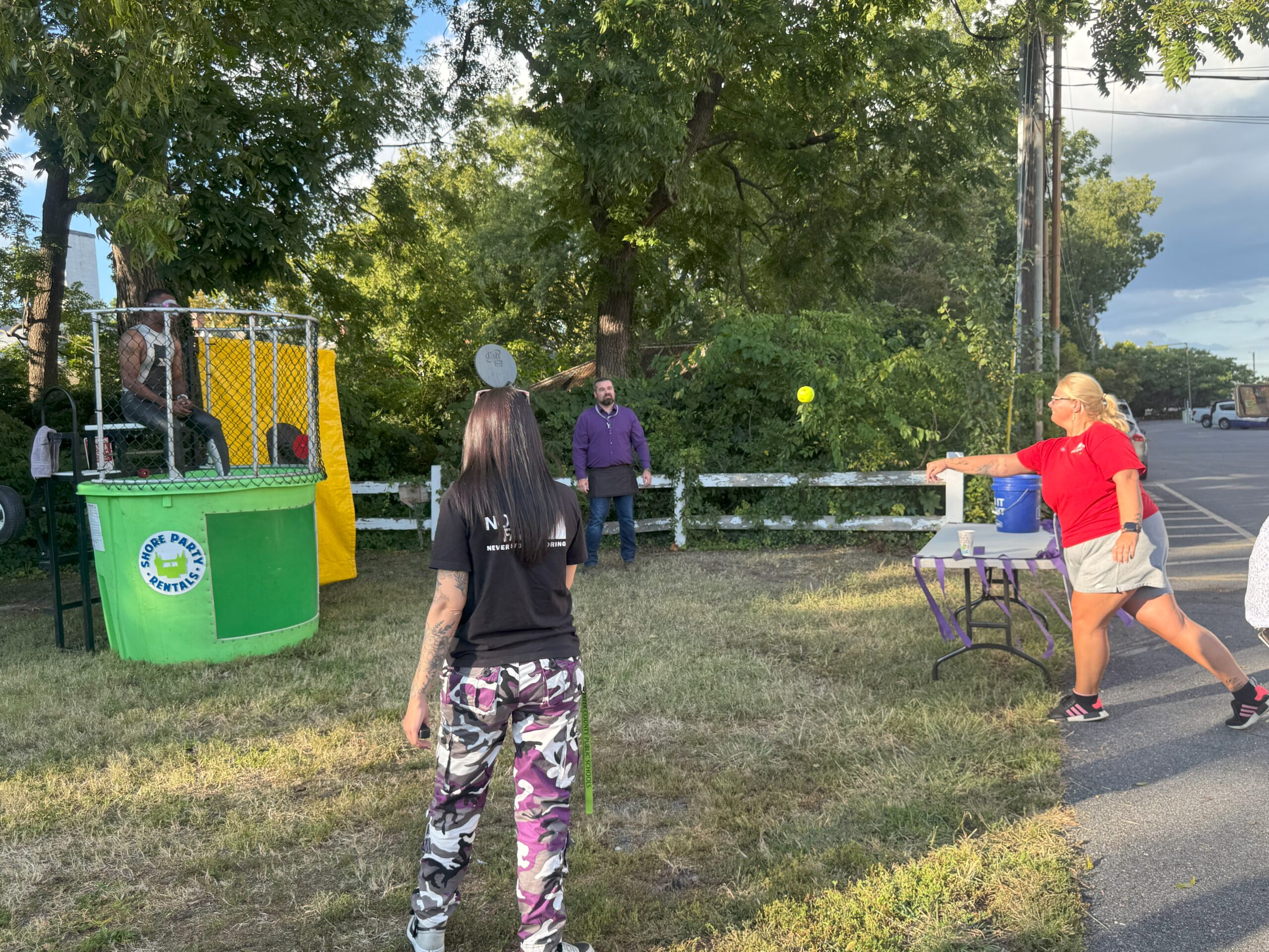 Kids try to dunk Dr. Jymil Thompson at Dorchester Goes Purple Kick-Off on Sept. 2